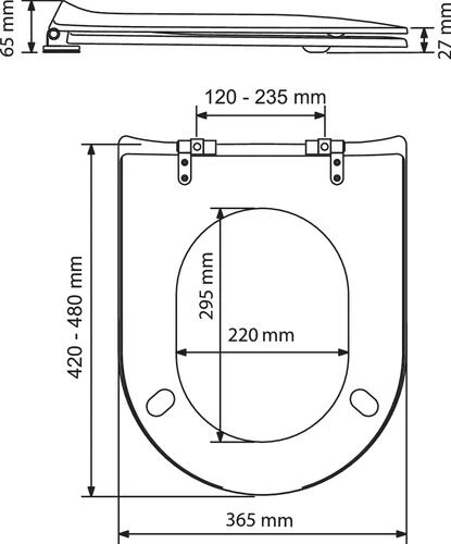 - À installer sur toute cuvette normalisée avec entraxe 120 à 235 mm.