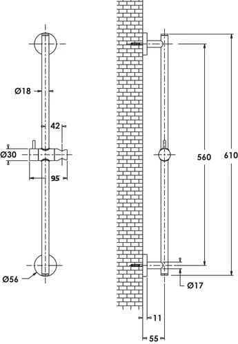 - Barre de douche métal Ø18, hauteur 61 cm.