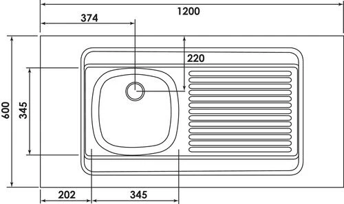 - Une cuve (profondeur 100 mm) avec égouttoir.