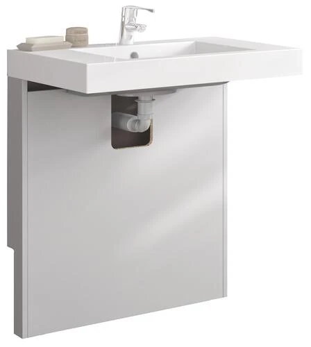 - Livré sans plan vasque, sans vidage ni robinetterie.