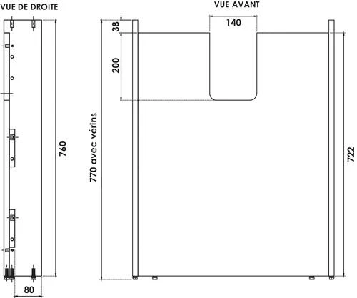 - Mise à niveau par vérins réglables, hauteur maxi. 10 mm.