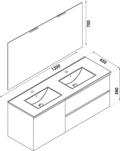 - Corps de meuble 120 cm livré monté avec vide sanitaire 7 cm.