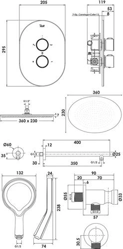 - Pomme de tête anticalcaire extra-plate 360×230 mm.