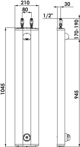 - Alimentation mâle 15/21 par le haut avec filtre, robinets d’arrêt et clapet anti-retour.