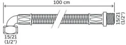 Flexible Sanitaire 1 Raccord Mâle 15/21 – 1 Coude écrou Tournant Femelle 15/21- Longueur 1000mm -DN8