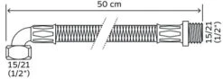 Flexible Sanitaire 1 Raccord Mâle 15/21 – 1 Coude écrou Tournant Femelle 15/21- Longueur 500mm -DN10