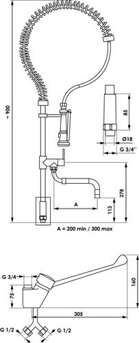 Mitigeur Monotrou Avec Douchette Industrielle Et Bec Mobile – RH