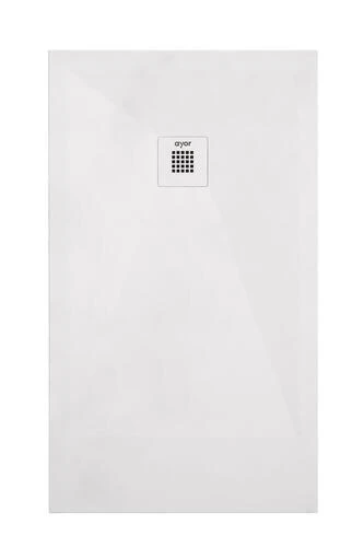 - Receveur 80 x 120 cm extra-plat 3 cm en résine de synthèse blanche, sans ressaut à encastrer et recoupable pour une installation sur-mesure grâce à sa fabrication en composé mixte résine et