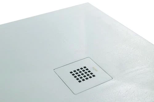 - Grille d’écoulement carrée de même coloris que le receveur et bonde de douche extra-plate à sortie horizontale à encastrer fournies.