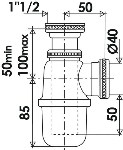 - Sortie écrou 40/49 avec joint américain pour tube diamètre 40mm.
