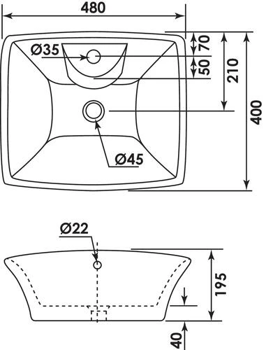 Vasque Rectangulaire à Poser 48x40cm – BATHROOM THERAPY